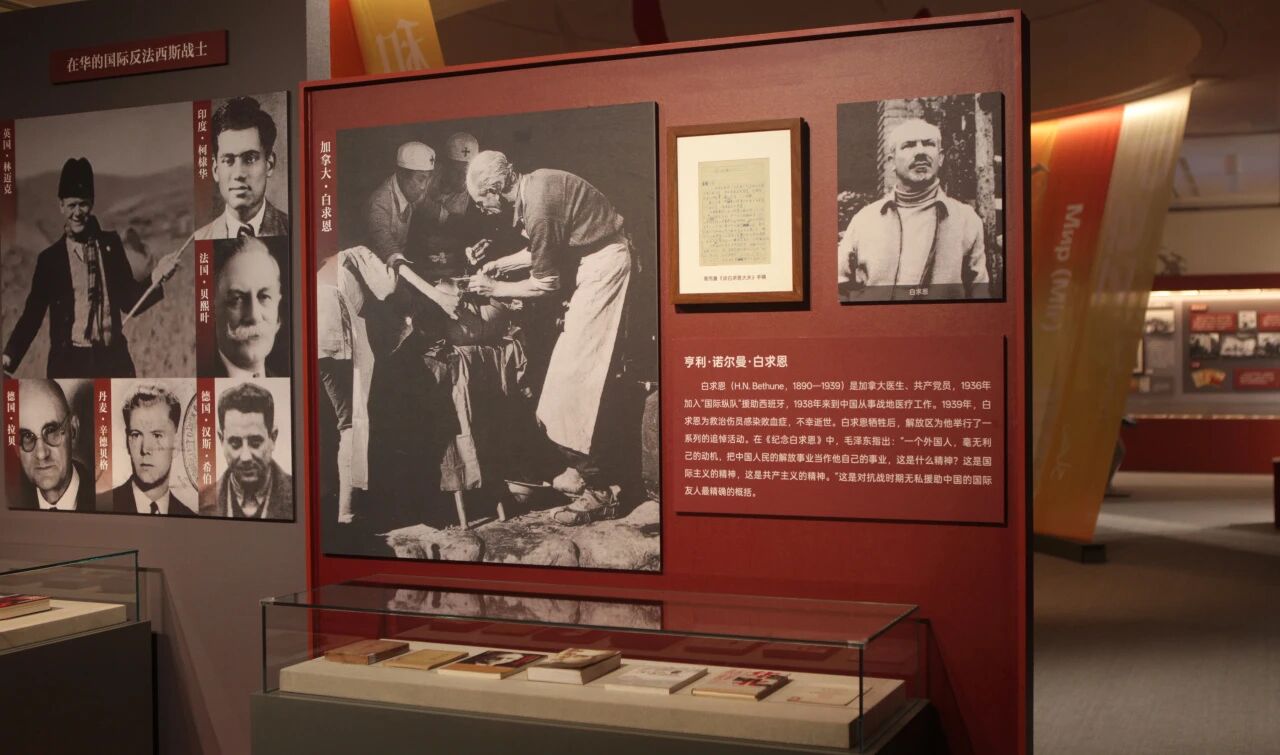 第四单元既凸现了“世界战场上的中国身影”,又体现出“中国抗战的世界之声。”该区域聚焦中国远征军赴缅作战、郁达夫海外抗日活动等史实;也呈现了史沫特莱、赛珍珠等国际友人的相关作品,展现中国抗战与世界反法西斯战争的紧密联系。“并肩作战”与“正义的审判”展区,通过苏联空军志愿队、美国“飞虎队”、白求恩、柯棣华等国际反法西斯战士的介绍,以及德国投降、日本投降与纽伦堡审判、东京审判的珍贵文献,见证国际社会的正义力量。   第五部分“人间正道”