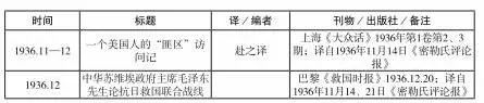 表1 1936—1938年斯诺陕北访问成果中译情况统计[8]