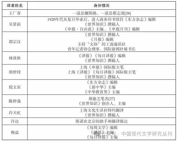 表2 复社版《西行漫记》译者情况(按1939年版扉页所录译者顺序排列)[25]