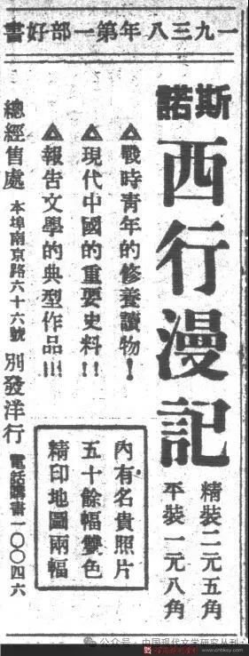 在相关研究中,《西行漫记》这一经典译著的重要性与传奇性表现在三个方面。一、它是震惊世界的Red Star Over China的首个完整中文译本;二、胡愈之的翻译组织工作与出版运作富有胆识:十几位译者短时间内合力译成,一家名为“复社”的出版社因此书而诞生;三、此书销量极大,许多青年受其感召奔赴延安。比上述三方面更宏观的传奇是,《西行漫记》的成书、翻译、出版其实是1936—1938年历史的情感趋向与时代氛围的浓缩性表现。