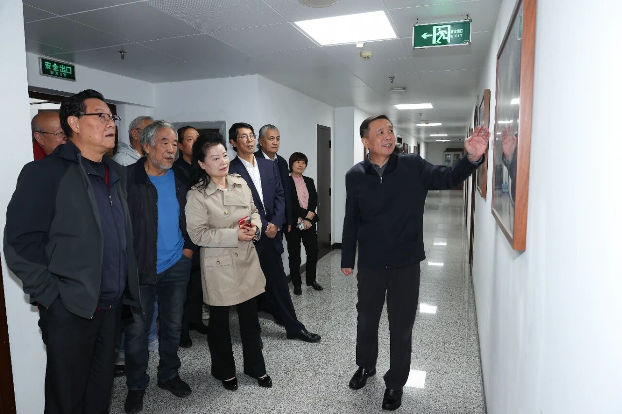 张宏森带领作家们参观作协大楼