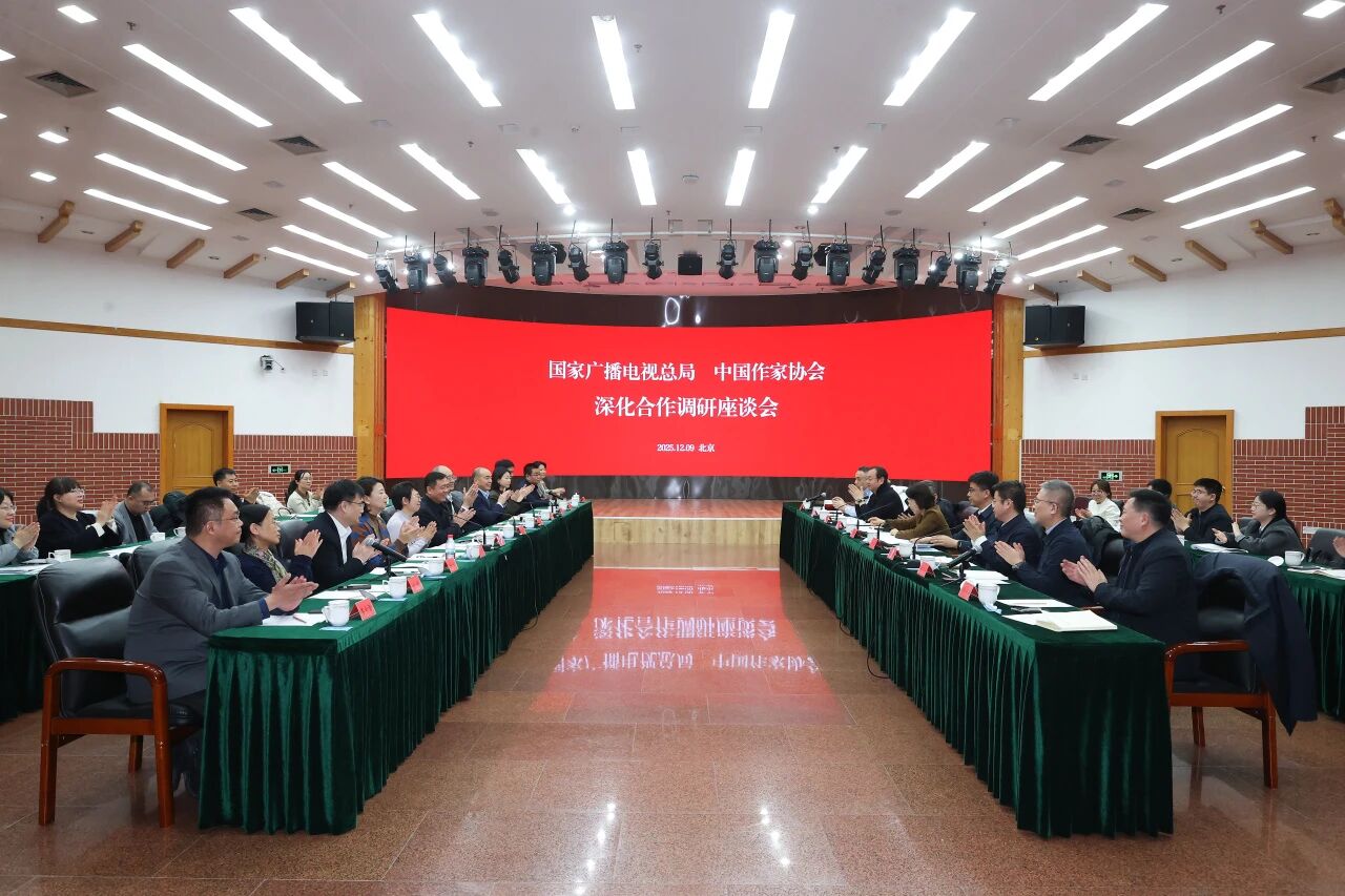 12月9日,国家广播电视总局与中国作家协会在京举办深化合作调研座谈会。中宣部副部长,国家广电总局党组书记、局长曹淑敏,中国作协主席、党组书记张宏森出席并讲话。国家广电总局党组成员、副局长韩冬,中国作协党组成员、副主席吴义勤出席座谈会。