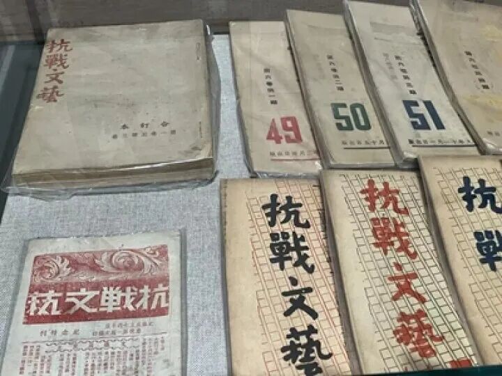 特别值得关注的是“抗战文艺期刊”展区,全套《抗战文艺》期刊首次完整呈现,这套刊物自1938年5月4日创刊至1946年5月4日终刊,是贯穿全民族抗战时期的唯一文艺刊物,见证了抗战文艺的发展历程;《热风》《鲁迅风》《烽火》等重要期刊的创刊号亦同步展出,共同构成了时代精神的鲜活载体。