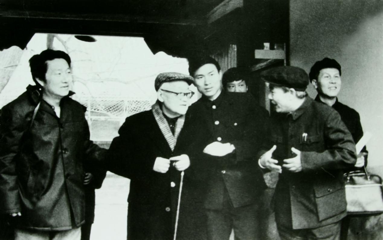 1985年3月26日,这对巴金(左二)来说是个难忘的日子,梦寐以求的中国现代文学馆终于正式开馆了。由叶圣陶手书的长匾“中国现代文学馆”挂在京城西郊万寿寺古朴庭院的门口。巴金露出了欣慰的笑容。